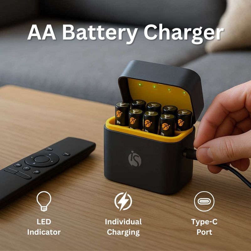 Al comprar este Cargador de Baterías en iServices, encontrarás un cable USB-C para carga rápida. De esta manera, tus dispositivos y accesorios que usan bpilas AAA funcionarán a la perfección y con la carga completa. Además, este cargador incluye 8 pilas que se cargan individualmente, ya que el cargador cuenta con un microcontrolador que detecta automáticamente la compatibilidad o falta de baterías.